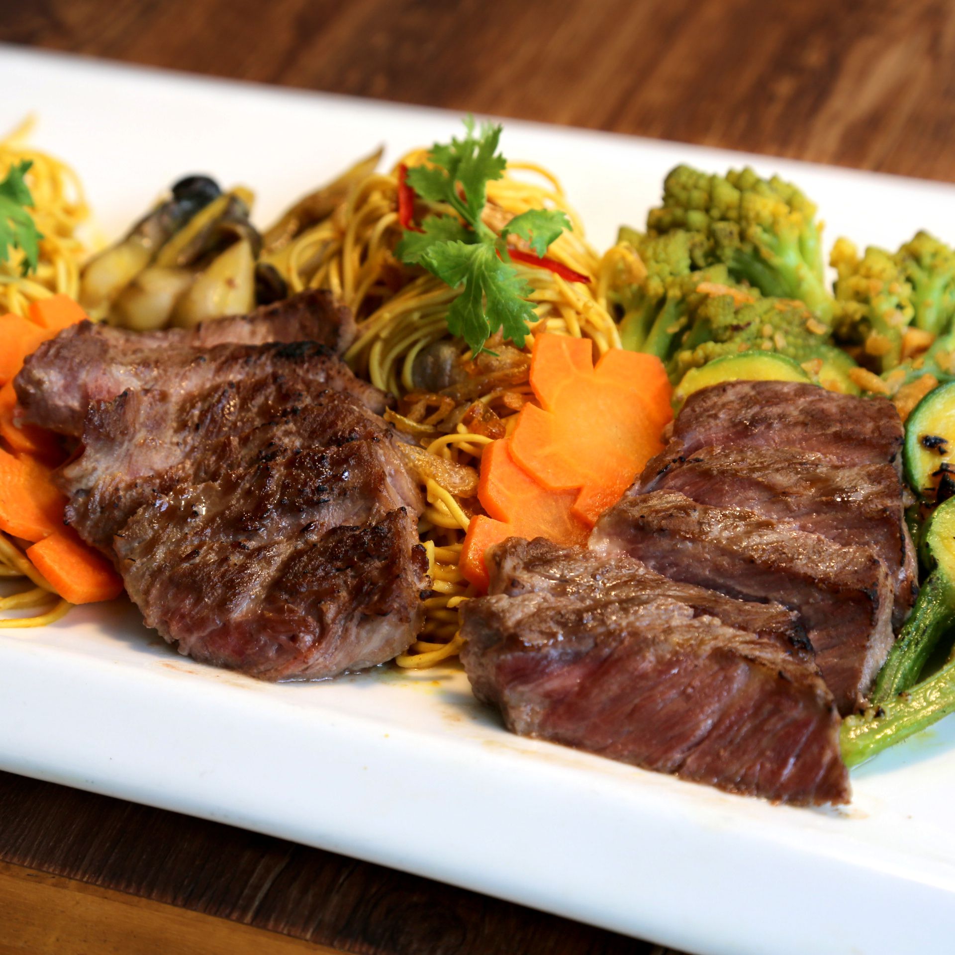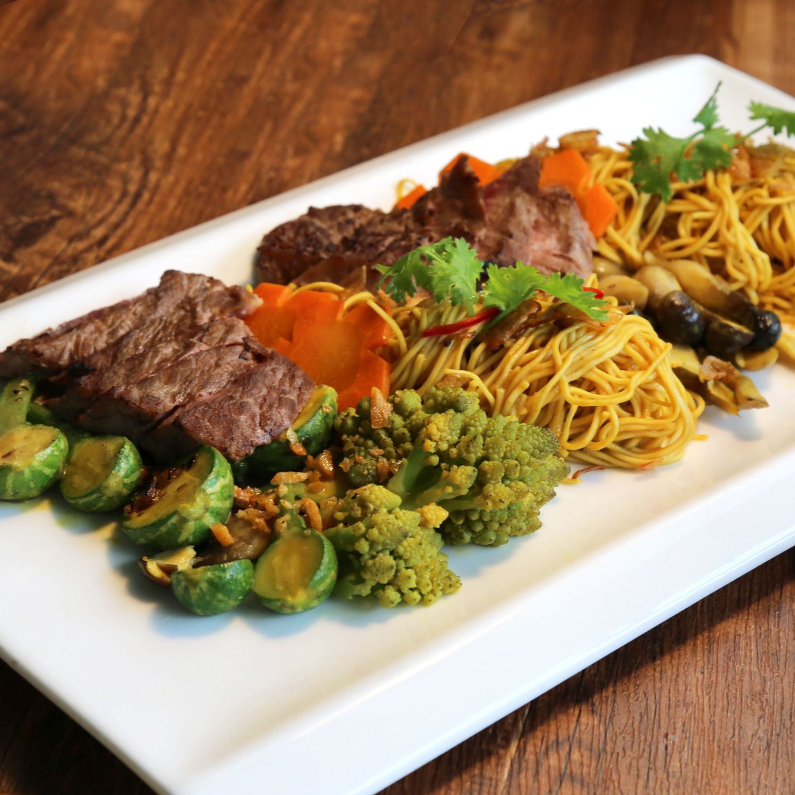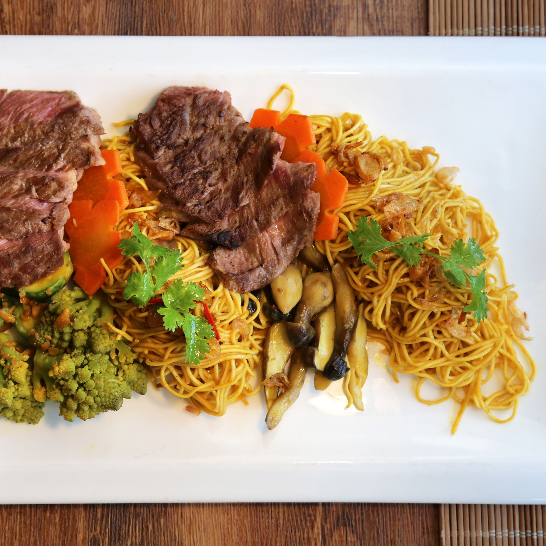 Mì bò Fuji+ sốt gan ngỗng là sự giao thoa hương vị hài hòa từ các nguyên liệu cao cấp. Bò Fuji+ được lấy từ phần thăn lưng của loại bò được nuôi tại Úc theo tiêu chuẩn Nhật. Thịt được thêm vào tinh dầu nấm Shimeji cùng tinh chất xương thịt và sữa bò Kobe - Wagyu. Khi kết hợp cùng sốt gan ngỗng béo ngậy sẽ tạo nên một món ăn mang hương vị độc đáo và hấp dẫn.